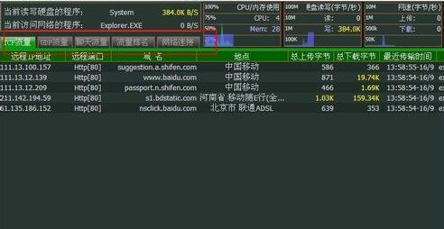3、即时表明每一个过程数据流量和电脑硬盘读写能力。