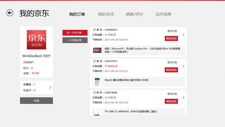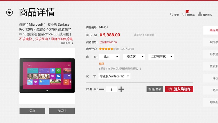 京东商城Windows 8手机客户端专为win8客户设计方案,在电脑上也可以感受京东手机客户端啦!京东商城(windows8版)是致力于windows8客户发布的一款京东买东西手机软件。适用Windows 8之上服务平台,适用x86, x64, ARMCPU,具备奖励活动、手机击杀、产品分类、产品访问 、提交订单等作用,致力于为您打造出更为便捷、便捷的买东西感受。
