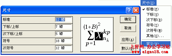 因此大家应用公式计算时必须依据文章正文字体大小来变更公式计算字体大小。因为公式计算字体大小全为西文本号,其与文字号对应关系需查看获得。与此同时在其中“上下标”等均要与“规范”的字体大小成占比非常复杂,以下给予一些常见的规格设定: