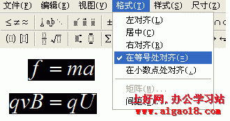 应用公式编辑器时,有时候大家期待二行长短区别很大的公式计算能统一用公式计算中的某一部位(例如等于号)两端对齐,如图所示6。