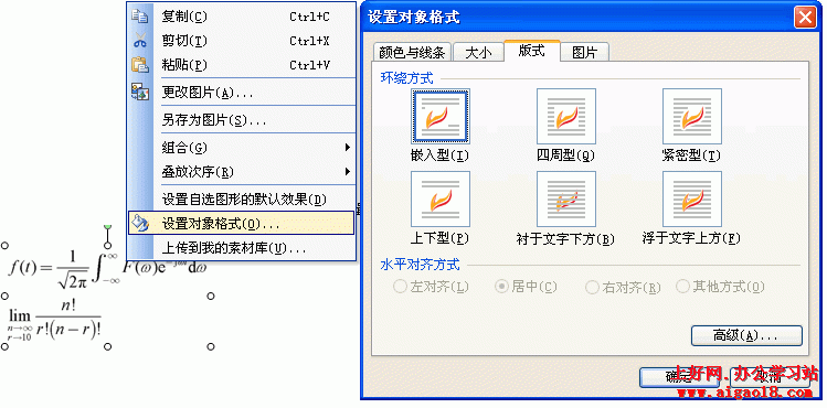 置入型用以将公式计算嵌入文章正文当中,左右型用以使公式计算单独成形,四周型和密切型用以使文本围绕公式计算(这时公式计算能够 随意挪动)。