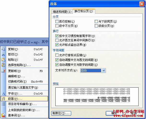 我们可以根据设定此段文本的段落格式来使公式计算修复齐整。选定此段文本,电脑鼠标右键挑选“文章段落”选择项,再挑选“自动换行和分页查询菜单栏”,如图所示11。