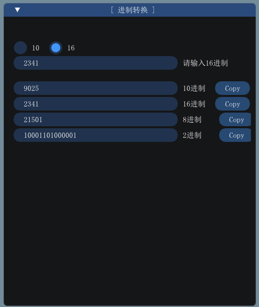 1 进制转换:在文本框中按回车键确定,就可以进行变换。