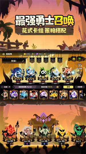 五个勇士一组,数十个勇士彼此搭配,解锁数百种组合!不同的能力互相搭配可以获得各种超乎意料的特殊效果,尽情开放你的脑洞,进行大胆尝试,开发出属于你的所向披靡的最强阵容!