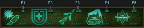 每台步战车一共有五个专业技能,键盘快捷键各自相匹配F1-F5或是数字1-5键