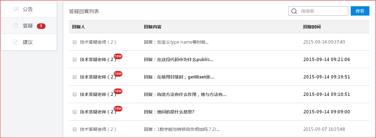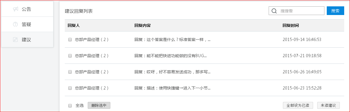 l 左边导航栏上的答疑解惑会显示信息实际的已读答疑解惑回应总数,点一下右边已读答疑解惑回应后。情况由已读改成已阅