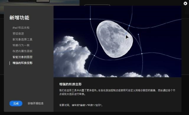 在形变专用工具中内嵌了大量控制,能够在各部加上基准点或应用可自定网格图切分图象,对很大选区开展变换。