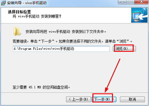 安裝指导将把 vivo手机驱动 安裝到下列文件夹名称中。