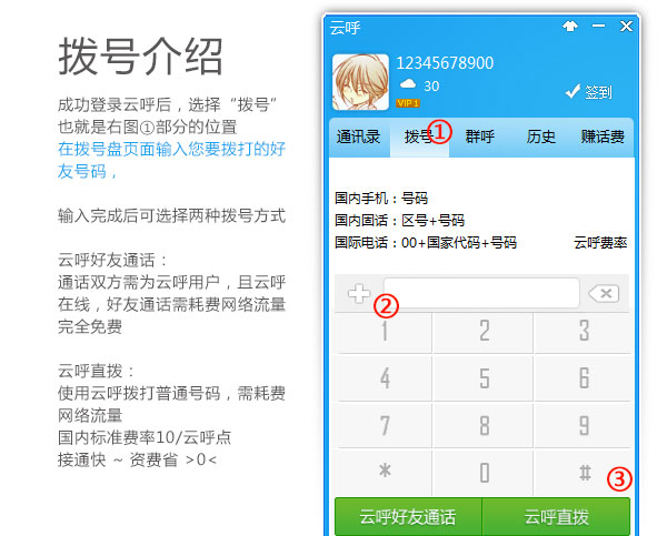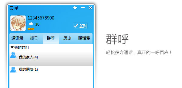 语音通话彼此能以云呼客户,且云呼线上,朋友语音通话需消耗数据流量,完全免费
