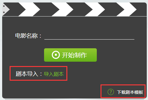 ②进到增加电影页面,键入电影名称,点一下刚开始制做;还可以导进台本,剧本模板可点一下右下方免费下载。
