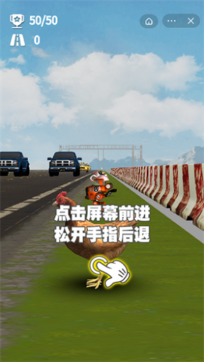 3.放手停止前进,不同方式的跑酷过马路,帮助小鸡挑战。