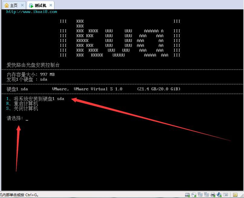 vm虚拟机我默认设置就加上了一块电脑硬盘,因此 就仅仅鉴别到一块虚拟硬盘,在这个网页页面,挑选1,回车键,进到自动安装系统软件环节。安裝取得成功会自动关机,进到汉语控制面板的页面