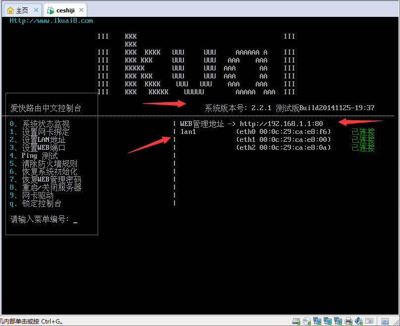 4)在你真正设备里边对于你做仅服务器方式的虚拟网卡(网口8)设定详细地址,(例如:爱快刚安裝取得成功默认设置是192.168.1.1,IP地址就可以设定是192.168.1.2,网关ip是192.168.1.1,DNS得话就依照恰当的填好,那样路由器安裝取得成功后,就可以浏览器打开,键入192.168.1.1就可以进路由器页面设定)