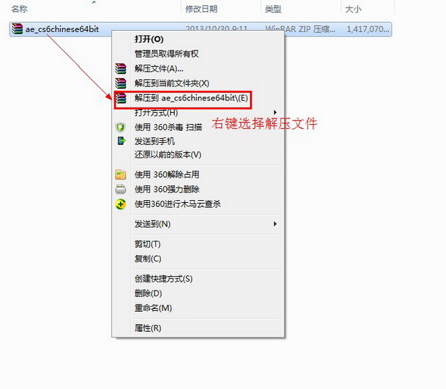 最先把我们下载的Adobe After Effects cs6【AE CS6】文件包缓解压力出去 如图所示一。