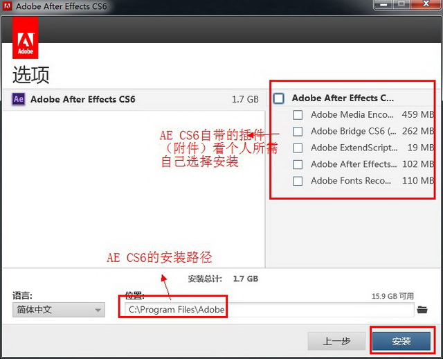 8第八步:Adobe After Effects cs6【AE CS6】安裝选择项