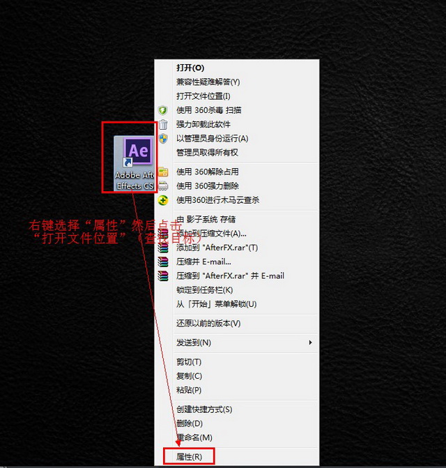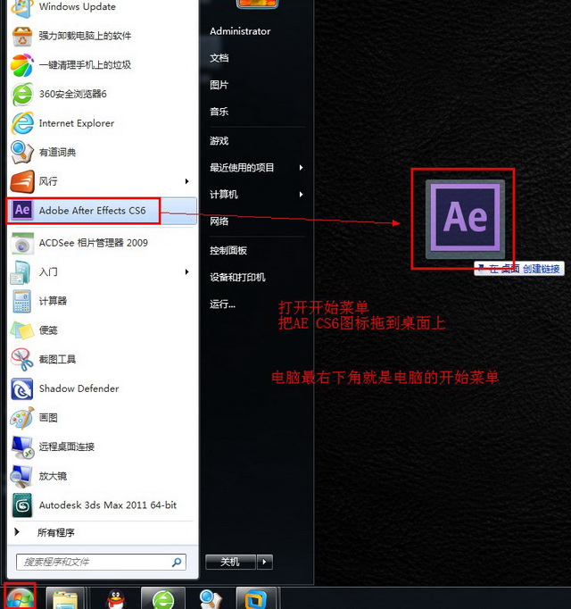 开启菜单栏把Adobe After Effects cs6【AE CS6】标志拖到桌面(如果是XP系统软件,开启菜单栏-程序流程) 如图所示十一。