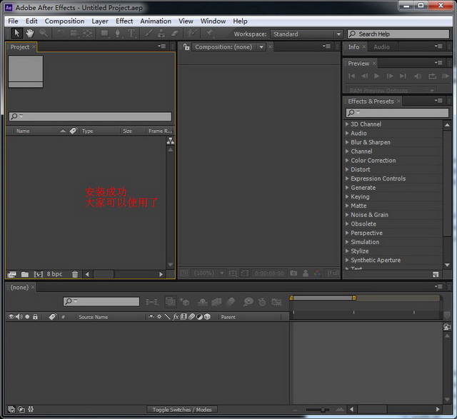 那样大家的Adobe After Effects cs6【AE CS6】就依照成功了,大伙儿能够应用了。