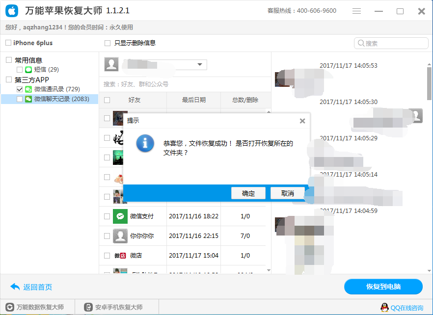 根据之上的流程就可以修复误删的微信聊天记录了。