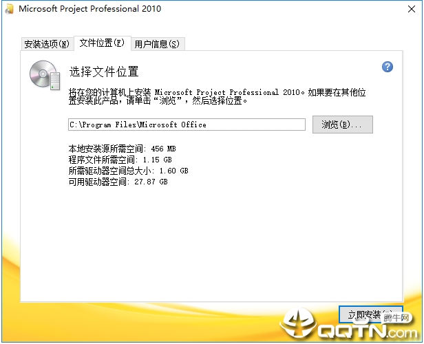 3、挑选Microsoft Project 2010安裝部位,您能够点一下【立即安装】手机软件会默认设置安裝。或是您还可以点一下【自定】。