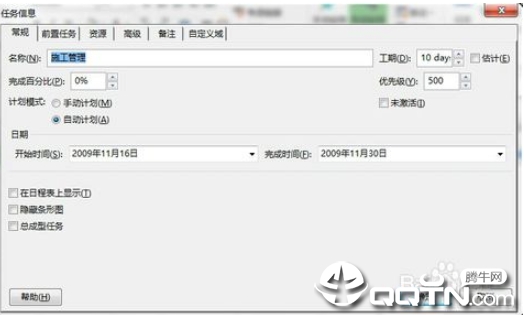 3、建立一个空缺的Microsoft Project2010新项目,键入新项目的名字,新项目刚开始的時间,进行的時间等信息内容,键入进行后点一下【明确】就可以了。