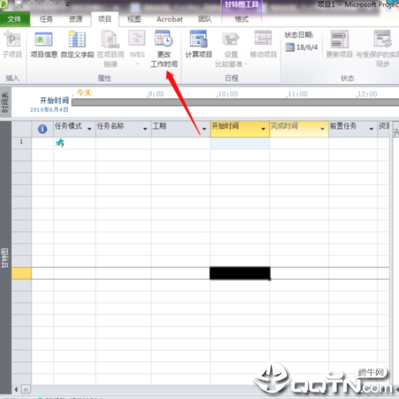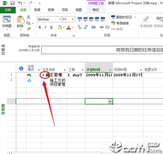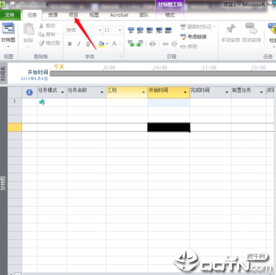 1、开启新创建的project2010新项目,点一下每日任务名字单元格,新创建第一个主每日任务。