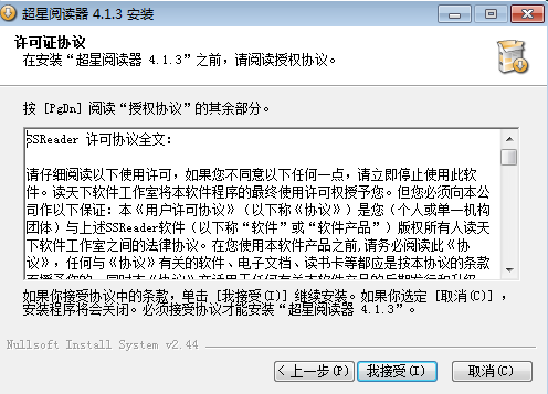 3、在依照“超星阅读器”以前,请阅读文章愿意应用授权协议。