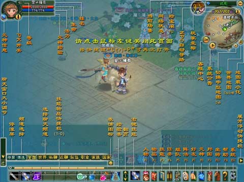 · 游戏页面左上角地区显示信息游戏玩家在游戏里面的人物角色名字、性命、法术、元魂工作经验、元魂信息内容、角色等信息内容。