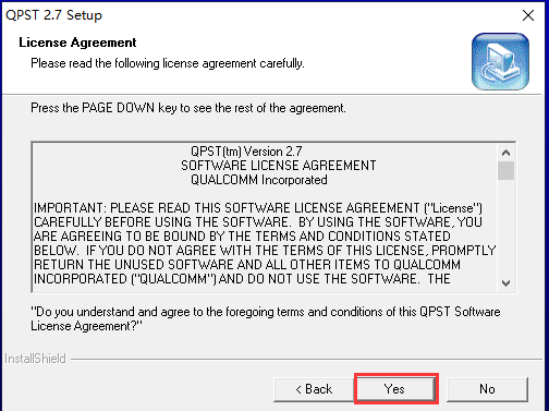 2、进到到qpst软件应用协议书页面,大家点一下页面正下方的Yes(是)选择项进到下一步。