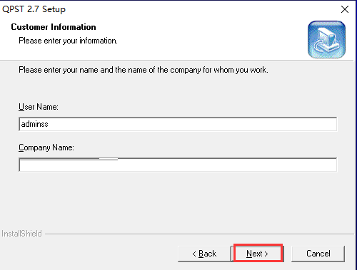 3、进到到qpst手机软件客户资料页面,你一直在该页面中能够键入user name(顾客名)、compary name(公司名字),键入进行后就可以点一下页面正下方的next(下一步)。