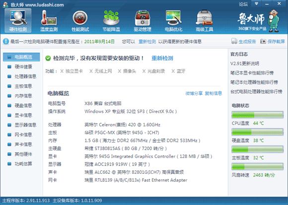 鲁大师合适于各种各样品牌台式机、笔记本、DIY兼容机,即时的至关重要构件的监管预警信息,全方位的配置硬件信息内容,合理防止硬件配置常见故障,让您的电脑上免遭困惑。
