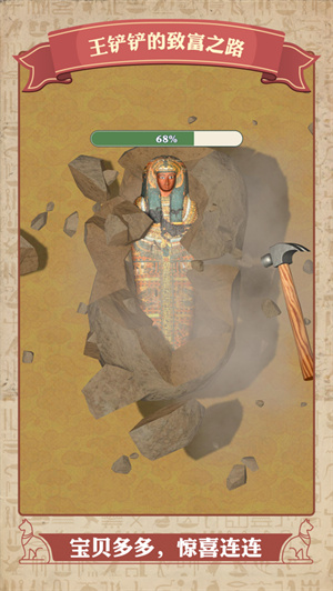 游戏中还会不时挖出神秘的石头,玩家可以选择用X光透视或直接用锤子砸碎石头;